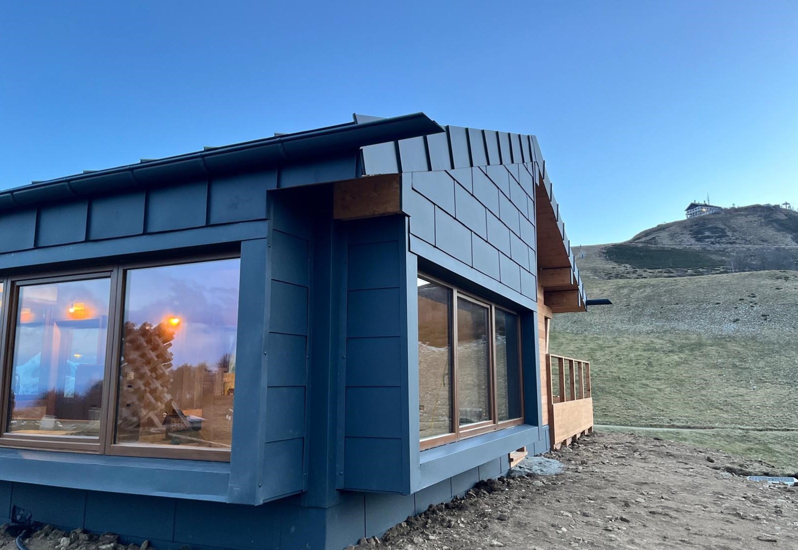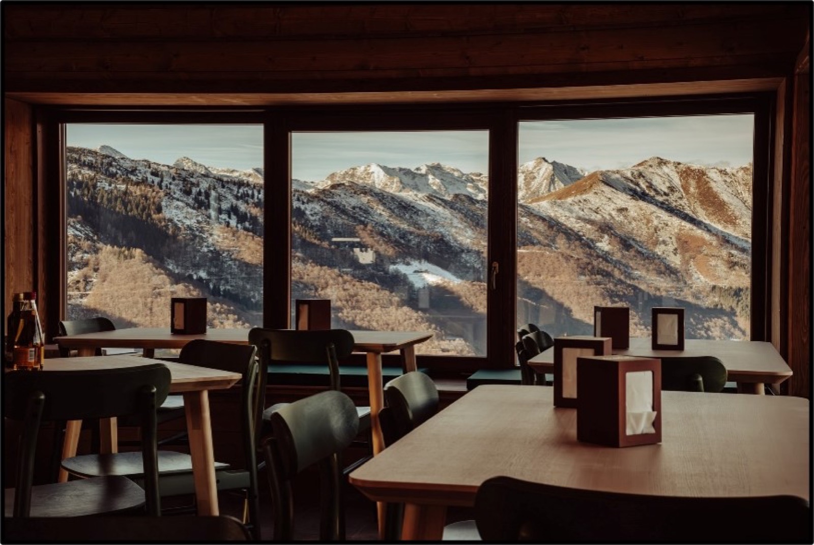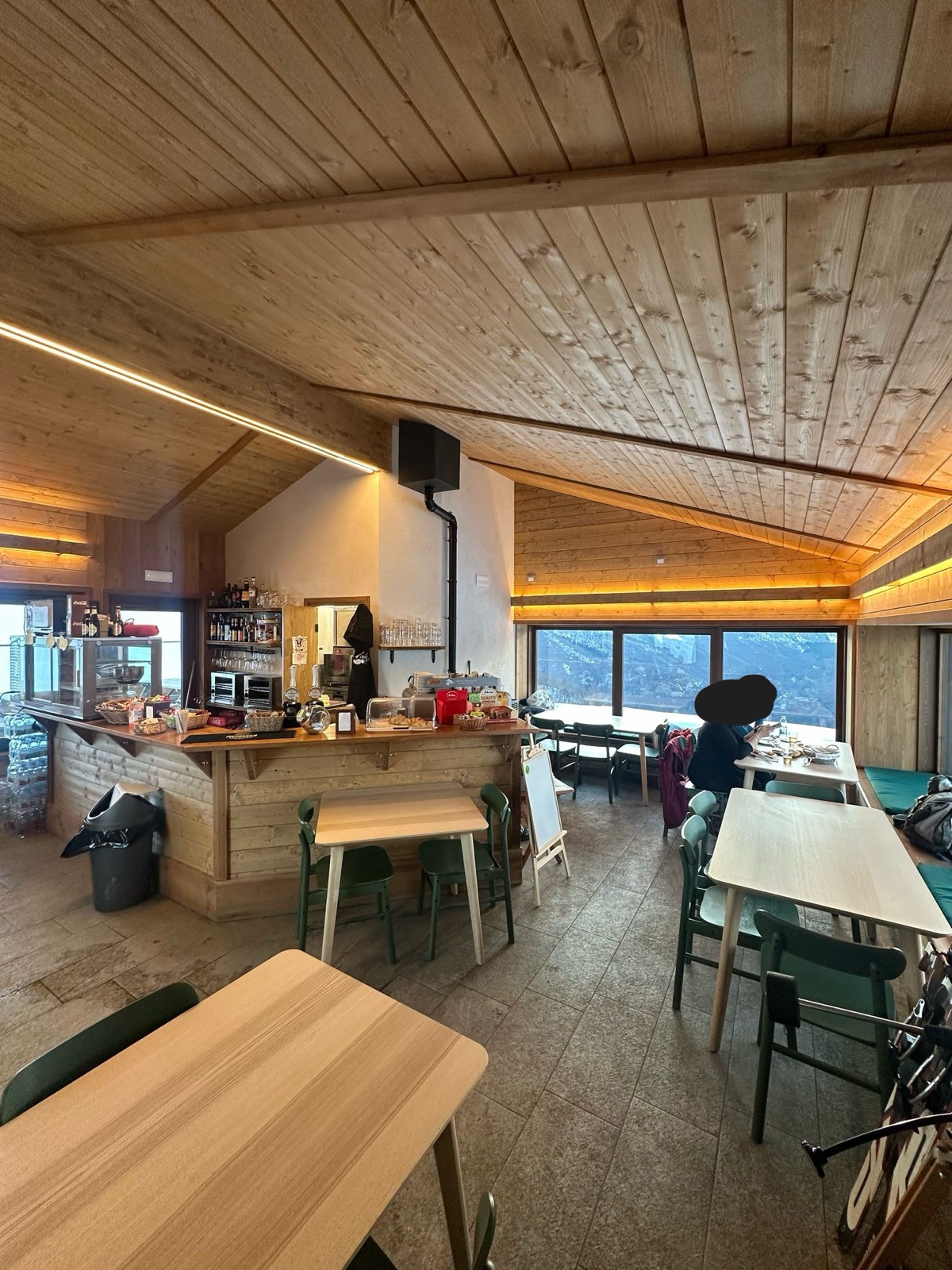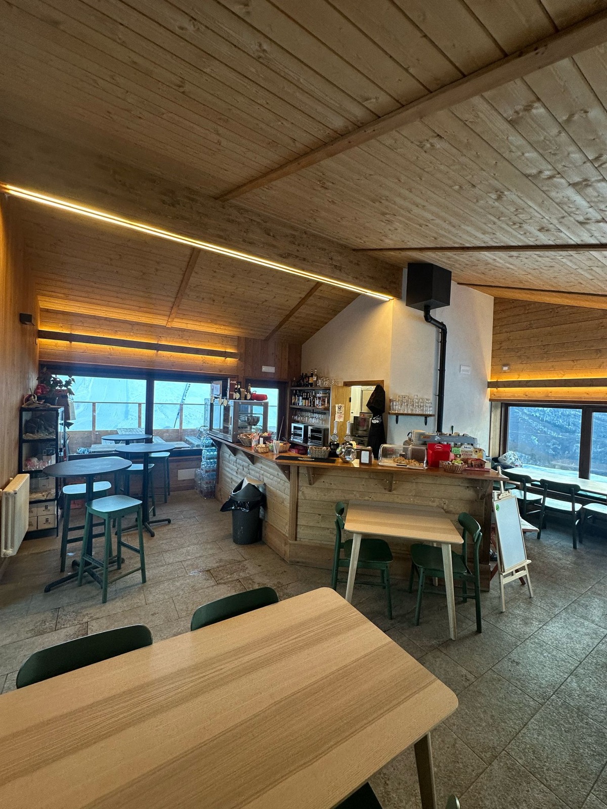 Demolizione chiosco fatiscente senza posti a sedere interni. Ricostruzione chalet al nuovo con posti 20 posti a sedere interni e terrazza esterna panoramica. La nuova costruzione è realizzata completamente in legno con copertura metallica ed arredo in legno su misura. Grosse vetrate vista panoramica sul Monte Rosa.