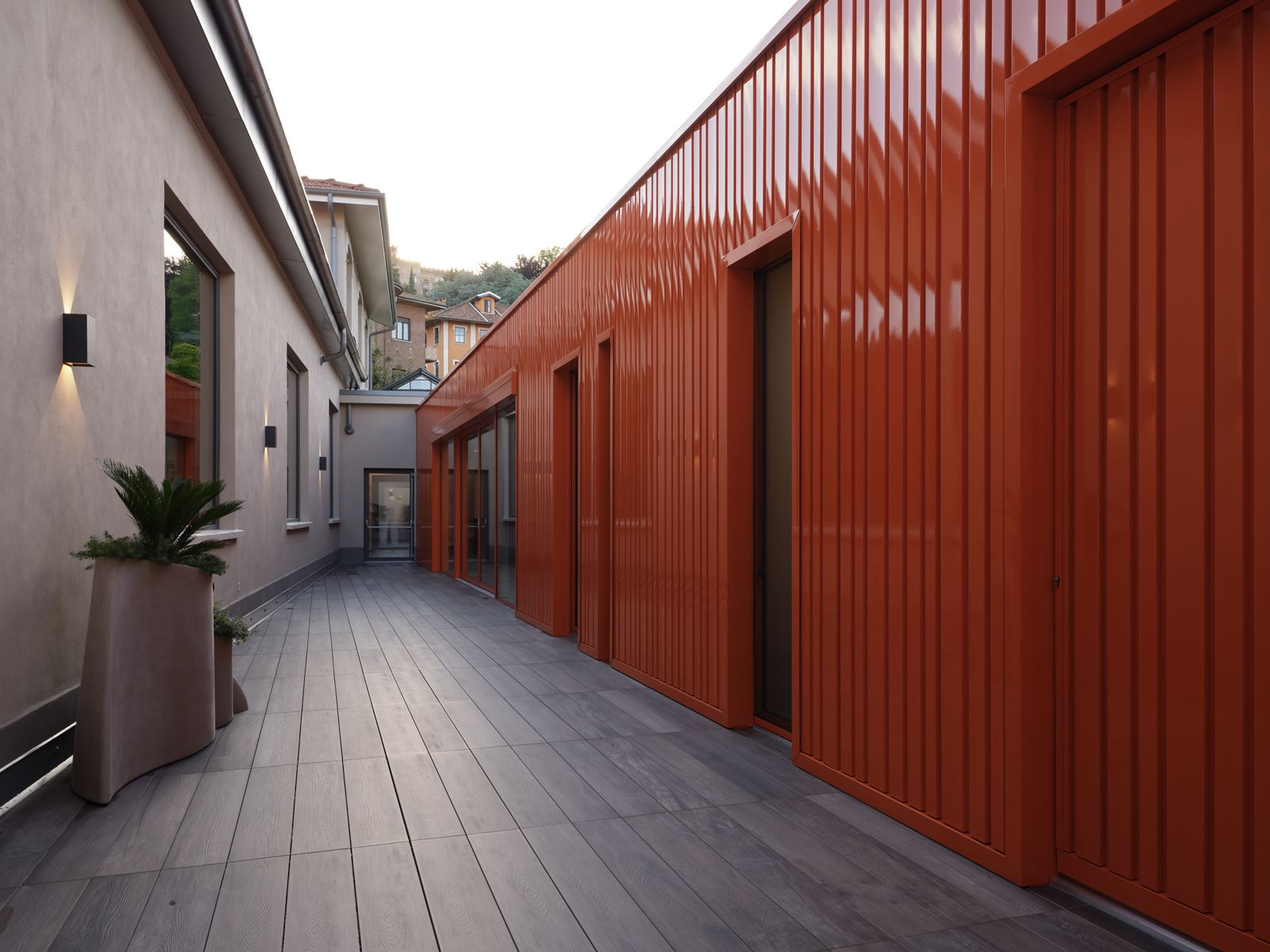L’edificio del 1919, sede della casa editrice Industria Et Labor e poi della tipografia Arti Grafiche Ramella, resta abbandonato per due decenni. Maiser Serramenti acquisisce e recupera l’immobile che oggi ospita uffici, showroom, un’area ristoro e una sala con capienza di 100 posti dedicata ad eventi, corsi e conferenze. L’impostazione progettuale lega il contenitore trattato nel rispetto della storia al contenuto adeguato al contemporaneo attraverso uso di materiali tradizionali e soluzioni tecnologicamente innovative, quali l’uso di nanotecnologie nell’efficientamento energetico. Particolare attenzione è dedicata agli aspetti impiantistici ed illuminotecnici per garantire contenimento energetico e adeguato confort lavorativo ed espositivo. L’intervento così realizzato affianca alle proprie necessità, anche una quota sociale volta a rispristinare il dialogo con il centro città attraverso la ricucitura in mimesi del tessuto urbano e la riapertura della facciata originale.