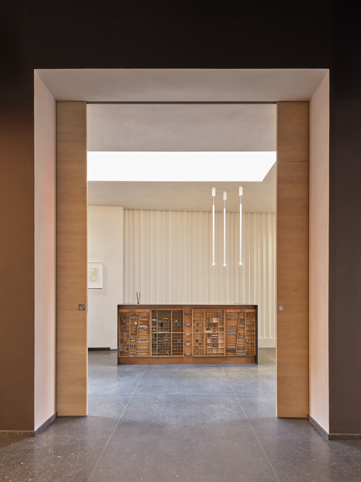 Il nostro obiettivo era trovare una nuova sede per Maiser, ma senza mettere in secondo piano la nostra Biella. Avremmo potuto scegliere un qualsiasi capannone in periferia, ma cosa avrebbe restituito alla città un anonimo showroom di serramenti? Abbiamo scelto, invece, di investire nel cuore della città, recuperando un immobile ai piedi del Piazzo abbandonato da vent’anni, che racconta una storia fatta di lavoro e fatica. Grazie alla collaborazione di grandi professionisti, in due anni abbiamo trasformato questo spazio in uno showroom di design, ma anche in un luogo aperto ai cittadini e alle aziende: pronto ad accogliere eventi, conferenze ed esposizioni. E la Tipografia Ramella? Dimenticare la sua storia era fuori discussione. Per questo, mobili, macchinari, stampe e timbri ritrovati al momento dell’acquisizione dell’immobile sono stati restaurati e oggi arredano i nostri spazi, per custodire e condividere la storia di chi ci ha preceduti.