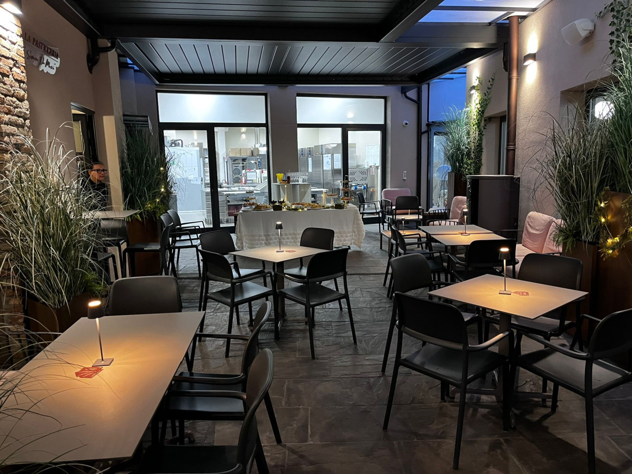 L'obbiettivo principale è stato quello di valorizzare un edificio in disuso da anni presso il Centro Storico per i cittadini Biellesi. Abbiamo realizzato un locale luminoso e moderno con tanti spazi per incontrarsi e trascorrere piacevoli momenti della giornata, mantenendo alcune particolarità della struttura come le colonne in mattoni e il tetto a vista , realizzando la terrazza che si affaccia direttamente in Piazza Duomo abbinando Tradizione e Innovazione. Il laboratorio di Pasticceria a vista è il fulcro della nostra attività, dove ogni giorno con estrema passione sforniamo prelibatezze per soddisfare i palati dei nostri clienti.